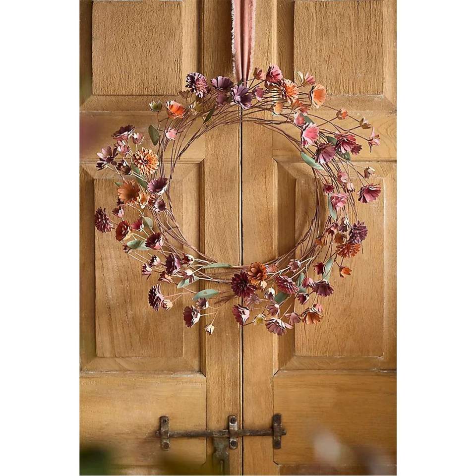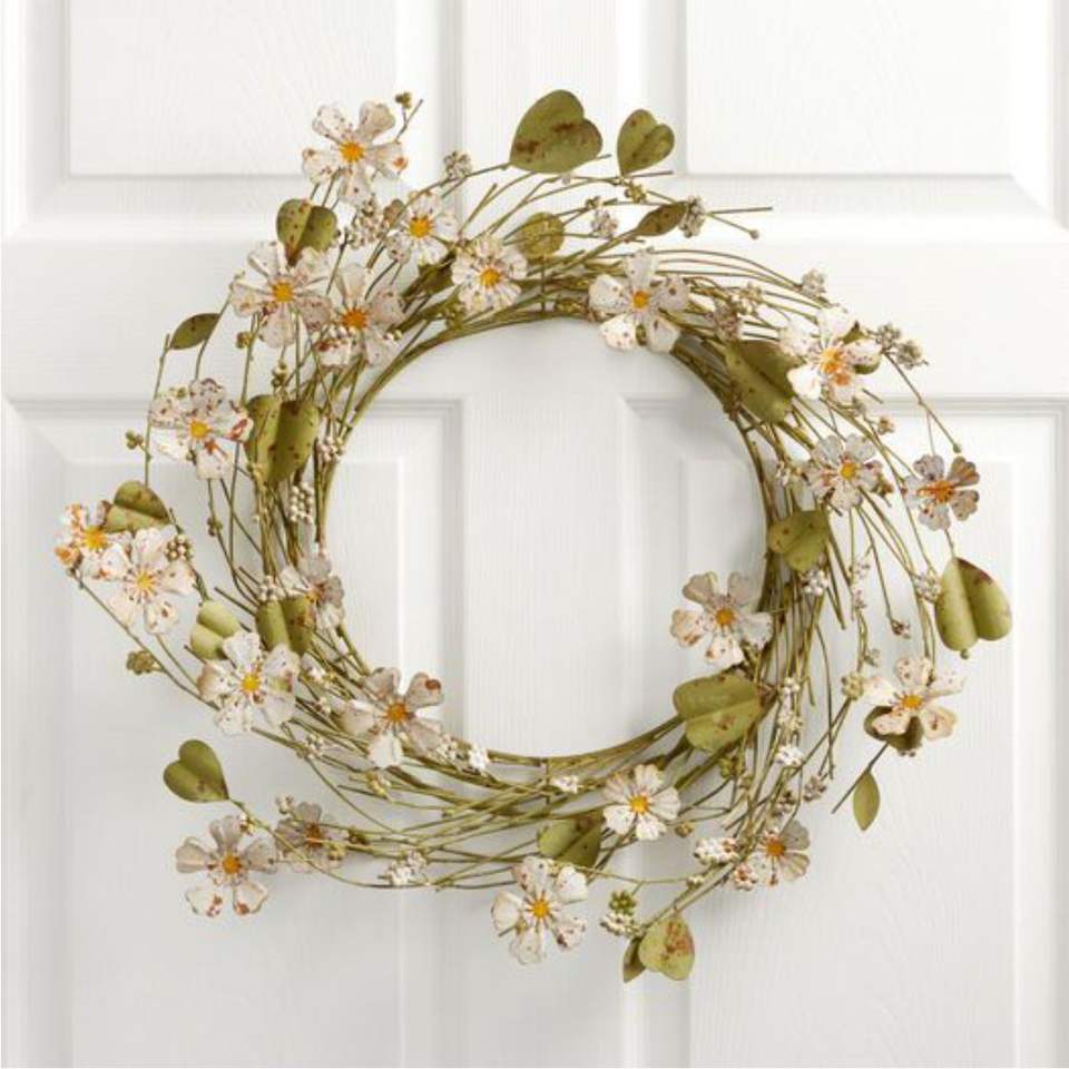 Couronne de fleurs en métal faite à la main, en forme de cœur, colorée, en fer, décoration murale florale pour la maison, le mariage, le jardin, ornement de Pâques et de printemps