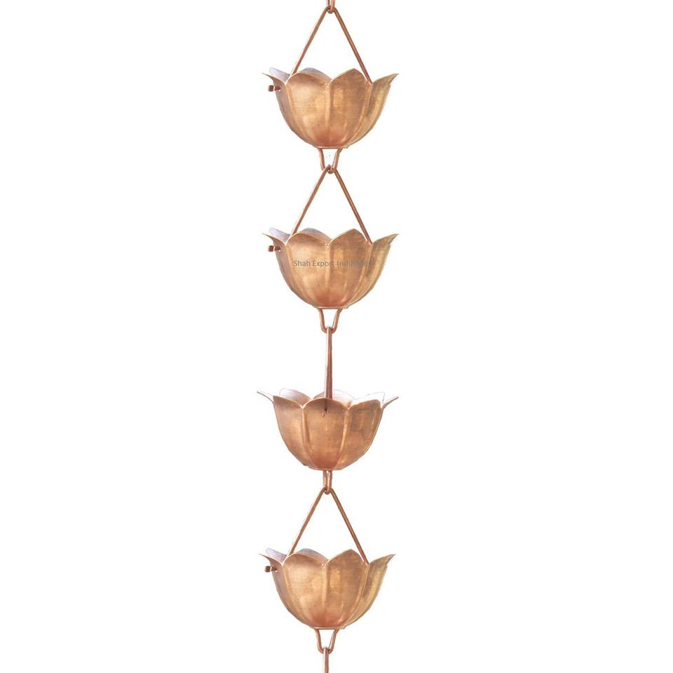 Chaîne de pluie en métal faite à la main avec design floral en cuivre fini pour la décoration de jardin à la maison et à l'extérieur