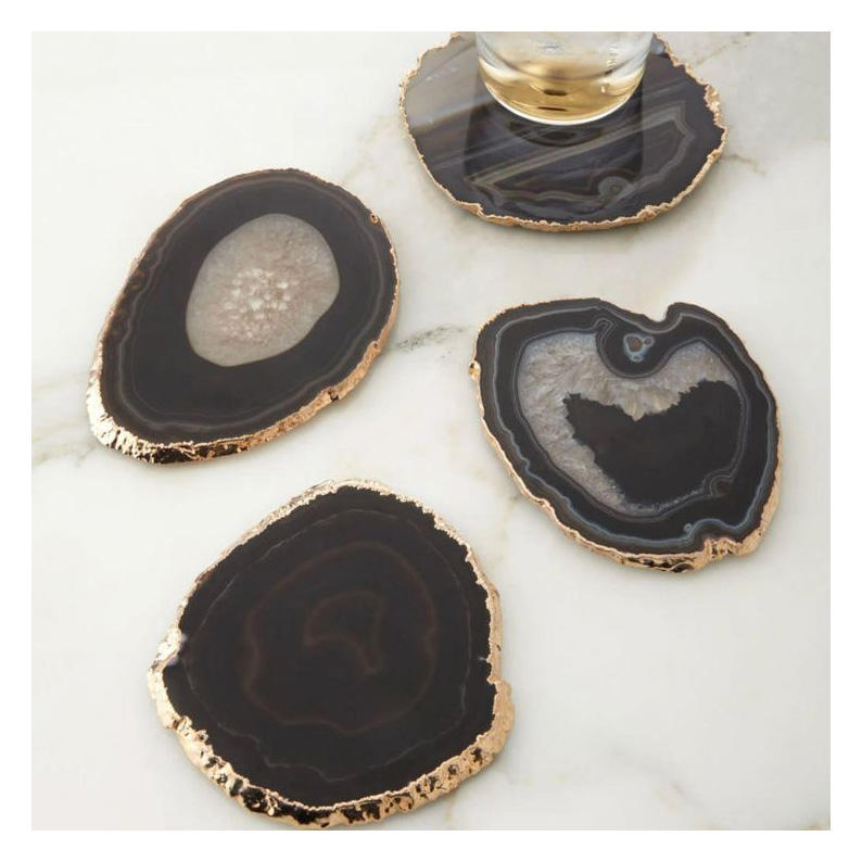 Ensemble de sous-verres en métal et résine faits à la main, bordure dorée électroplaquée, résistants à la chaleur, écologiques, durables, design personnalisable pour table basse