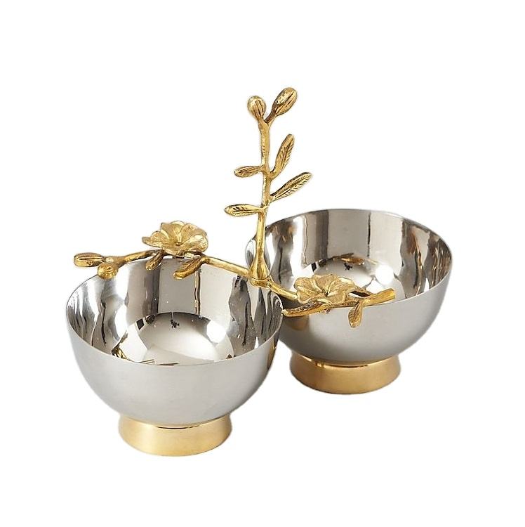 Bol de service en métal fait à la main avec base en or style floral pour décor de table biscuits collations plat de service bols décoratifs floraux élégants
