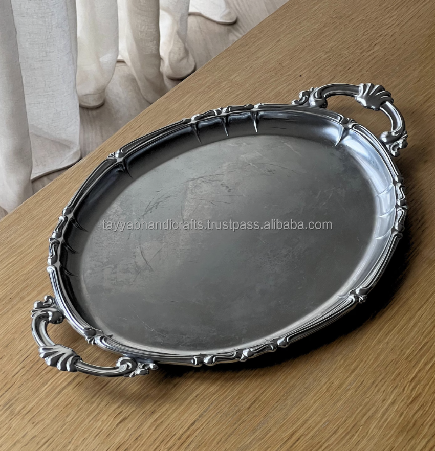 Plateau de service en métal fait main pour centre de table et usage domestique/restaurant, couleur et taille personnalisables