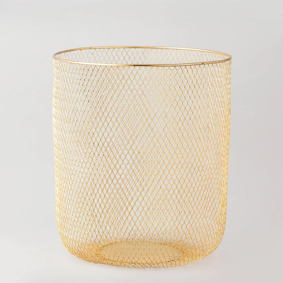 Panier de rangement fait main en métal plaqué or tissé maille cuisine paniers de table décoratifs avec poignées pratiques
