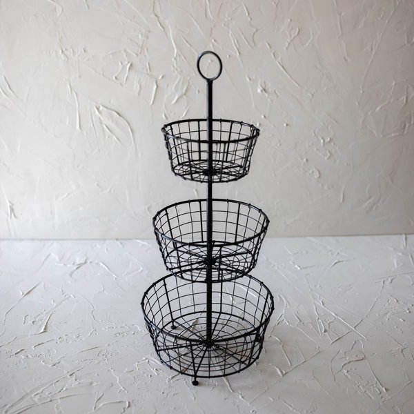 Williston Forge Panier de rangement en métal fait à la main pour la décoration de la maison Organisateur rustique vintage