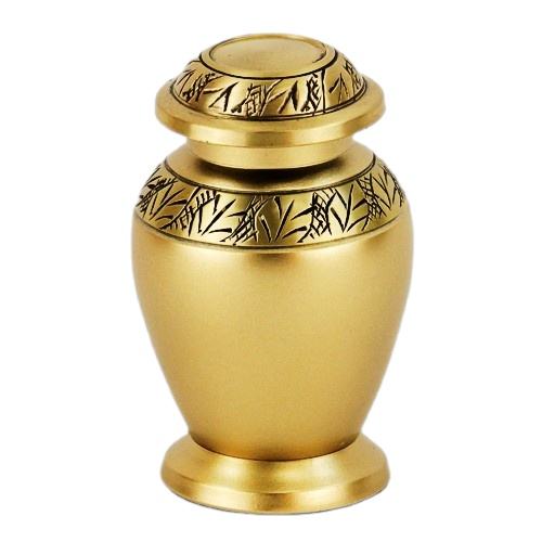 Metal Keepsake Cremation Urns Gold Hand Engraved Leaf Flower Band