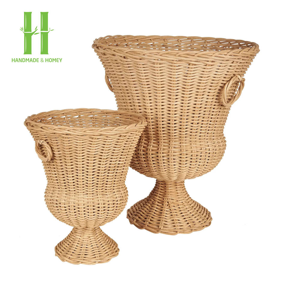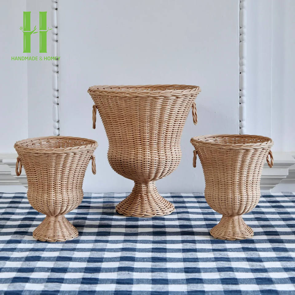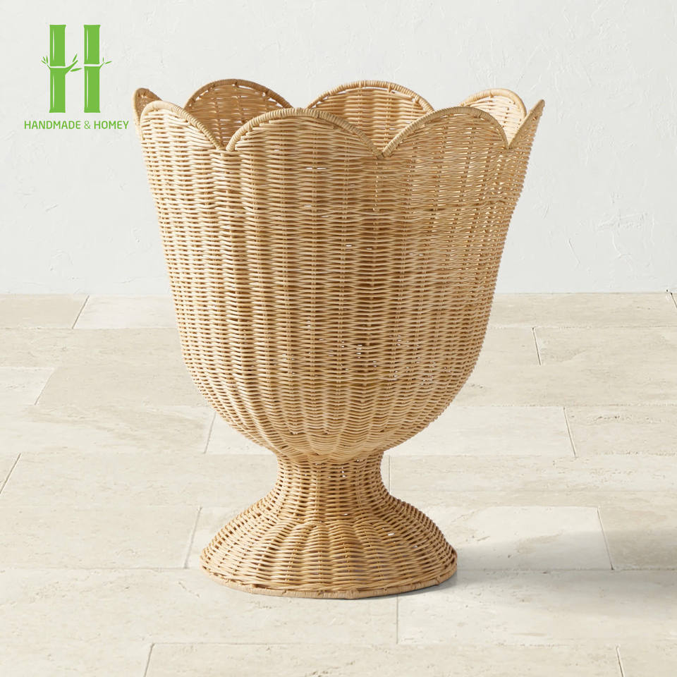 Vase à pied en rotin minimaliste fait à la main Artisan-Urne en osier forgé pour fleurs séchées Décoration intérieure OEM Made In Vietnam