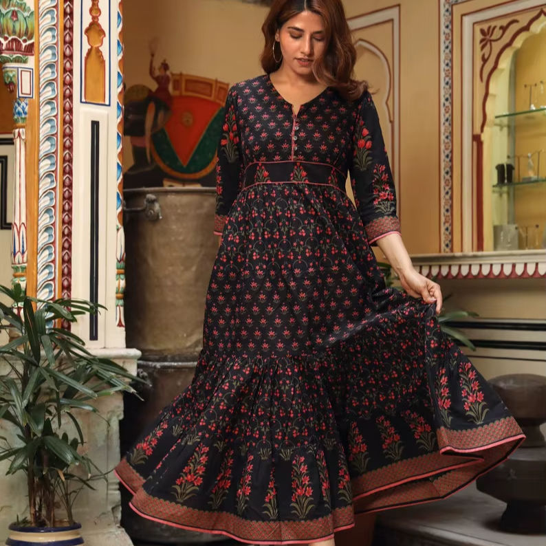 Handmade Mirana Dress Boho Cotton Hand Block Printed Casual Holiday Spring Summer Women Dress