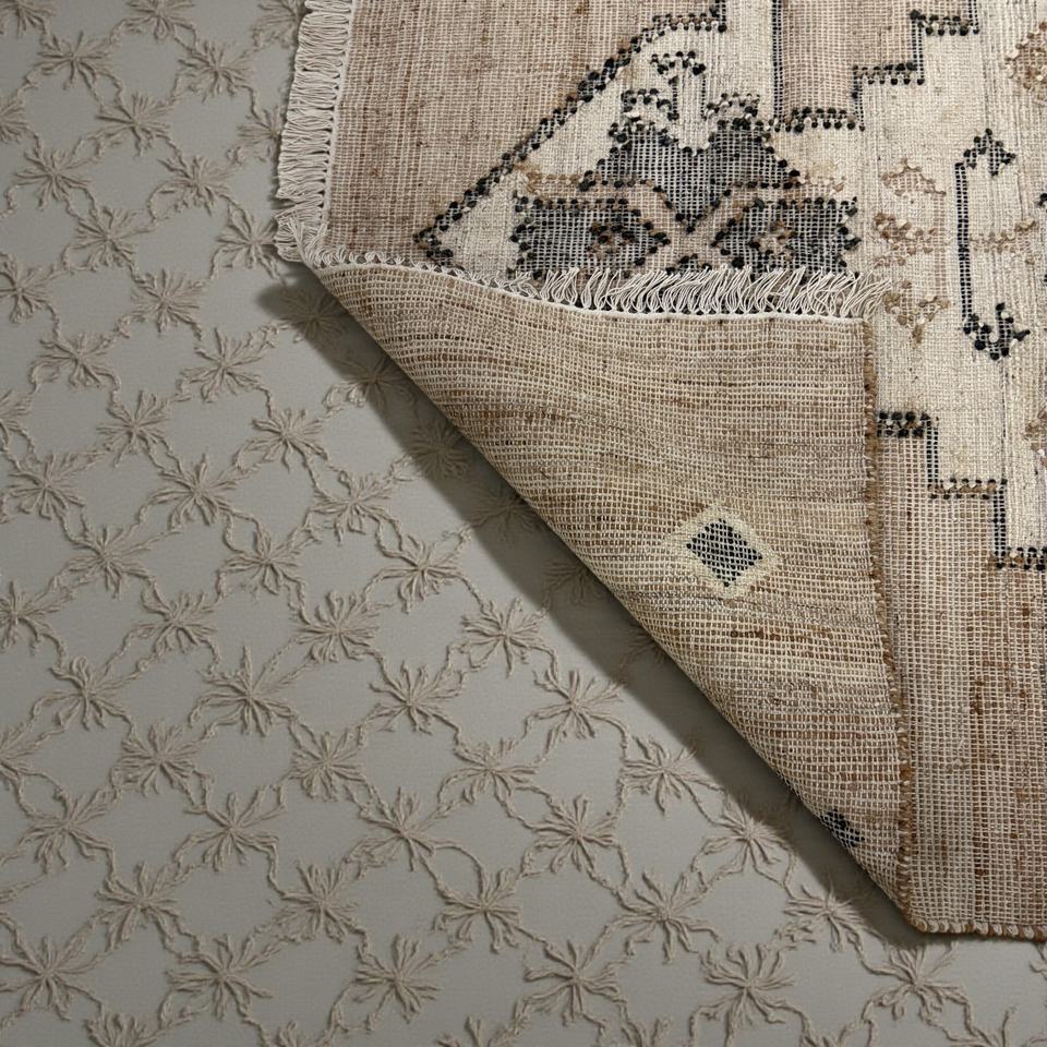 Tapis en jute abstrait moderne fait main, fibre naturelle, écologique, antidérapant