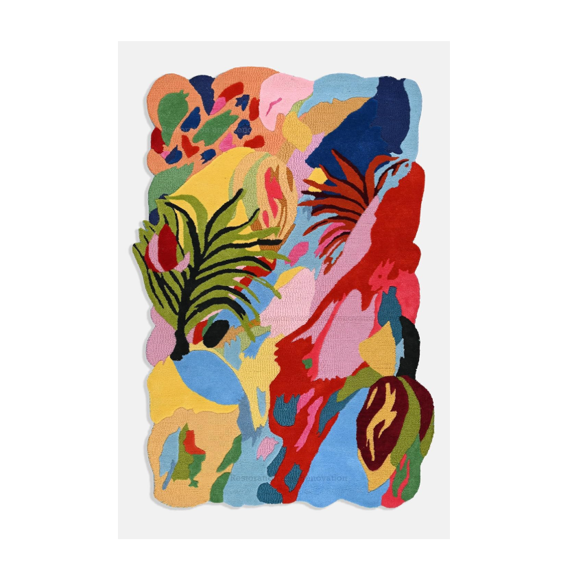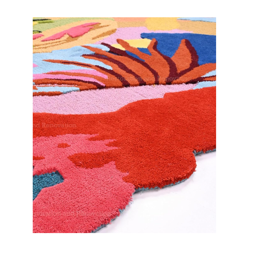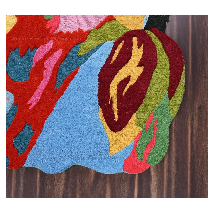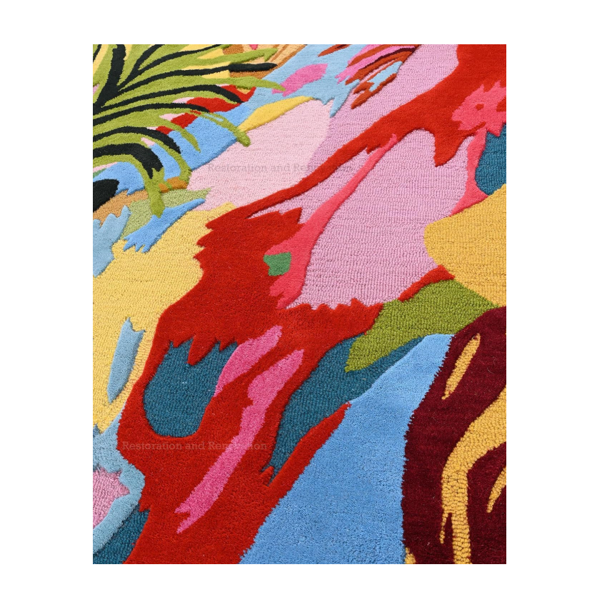 Tapis en laine artistique moderne fait à la main Tapis épais et doux Design floral vibrant pour le sol de la maison pour la restauration et la rénovation Acce