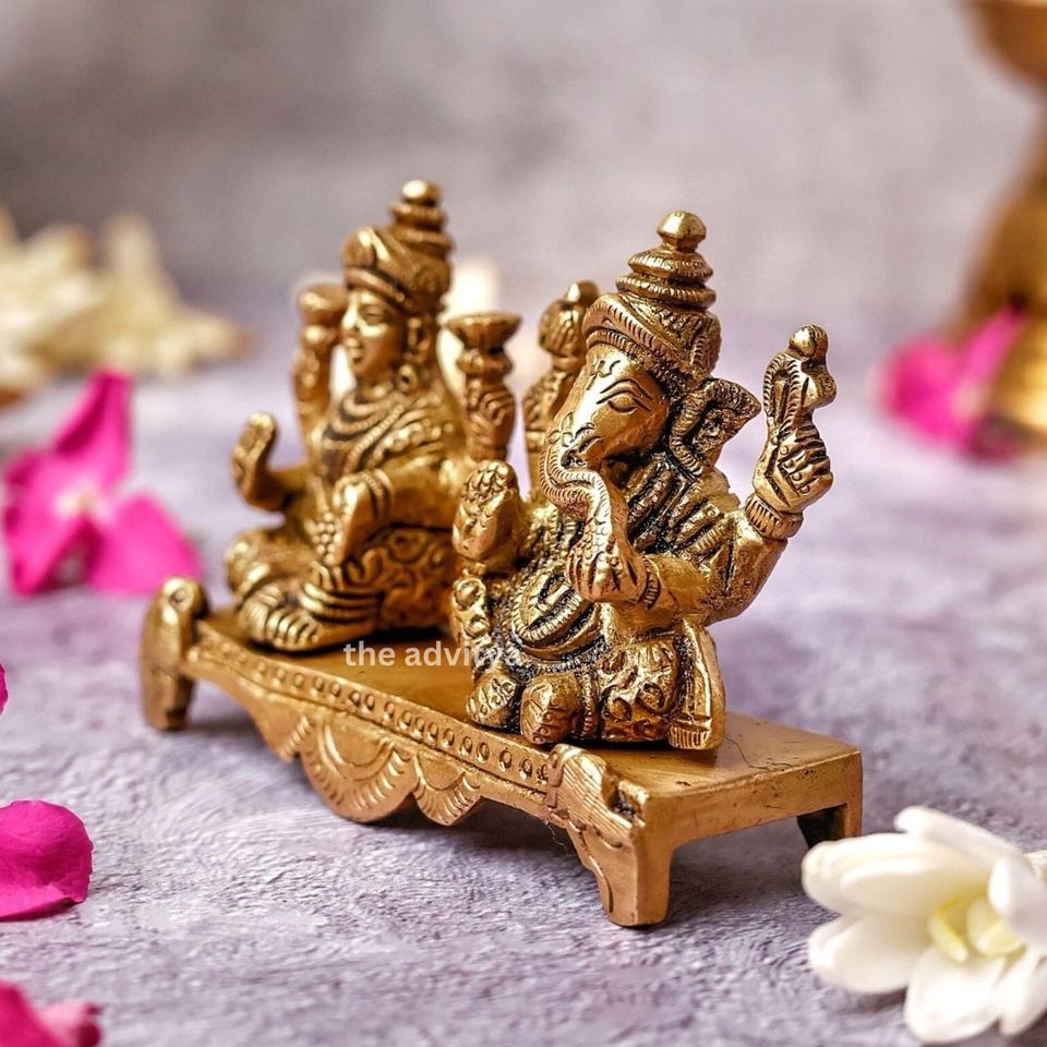 Sculpture moderne en laiton faite à la main Ganesh Laxmi idole petite taille pour bureau à domicile Pooja salle Festival cadeau Sculpture décorative