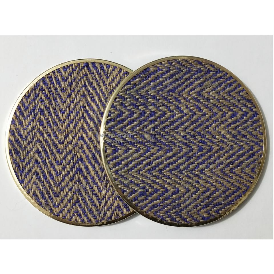 Dessous de verre en jute bleu au design moderne fait à la main, tissé en fibre naturelle avec des bords en laiton pour toutes les occasions d'Inde