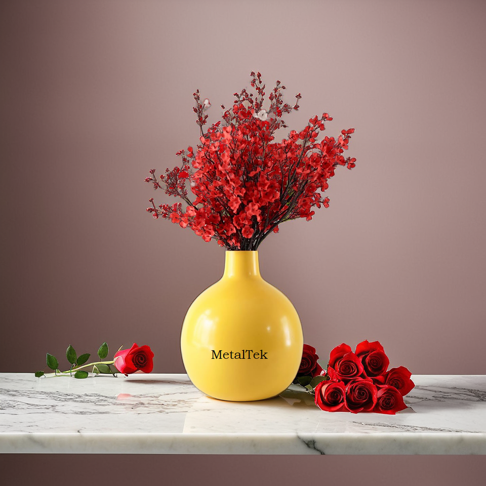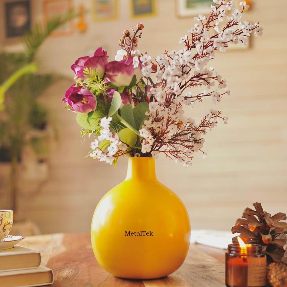 Vase à fleurs unique en métal fer forgé, design moderne contemporain, jaune vif, vide, pour table, décoration de mariage à domicile