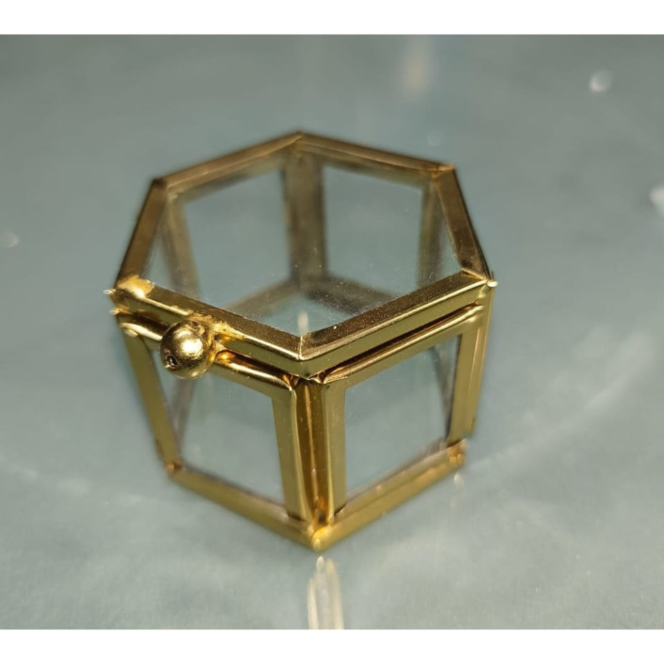 Boîte à bijoux octogonale géométrique moderne en verre et laiton, faite à la main, avec cadre en métal doré, pour rangement de bibelots, décoration d'intérieur et présentoir d'accentuation