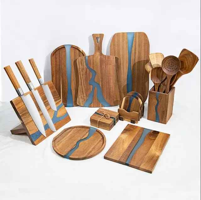 Mediterraneo Olive Eleganza Handmade Luxury Resin Epoxy Olive Wood Cutting Board Colorful Natural Wood Display Board