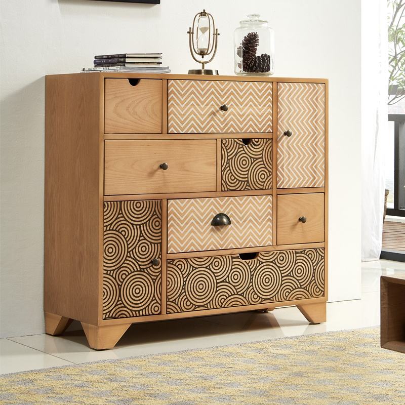 Commode de rangement de chambre à coucher en bois massif moderne faite à la main, style simple en bois rond, commode pour chambre à coucher et salon