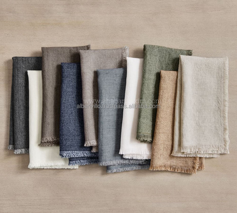 Serviette de cuisine en lin fait à la main moderne carré multi-rayures haute absorption 100% lin usage domestique