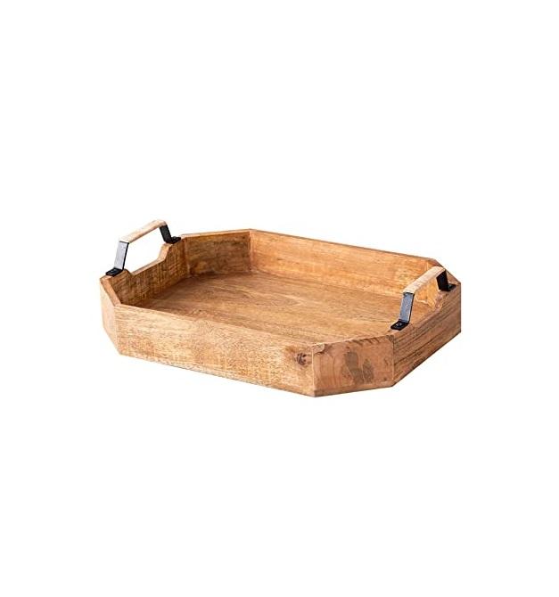 Plateau en bois d'acacia de style moderne fait à la main avec 6 parties plat et plateau de couleur naturelle pour la vaisselle servant un plateau de fruits secs