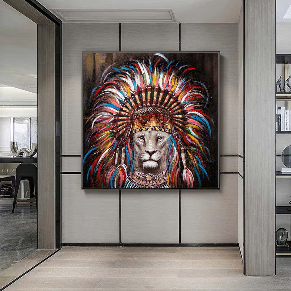 Toile de lion moderne faite à la main, décoration d'intérieur de luxe, figure décorative d'animaux indiens, peintures de portrait