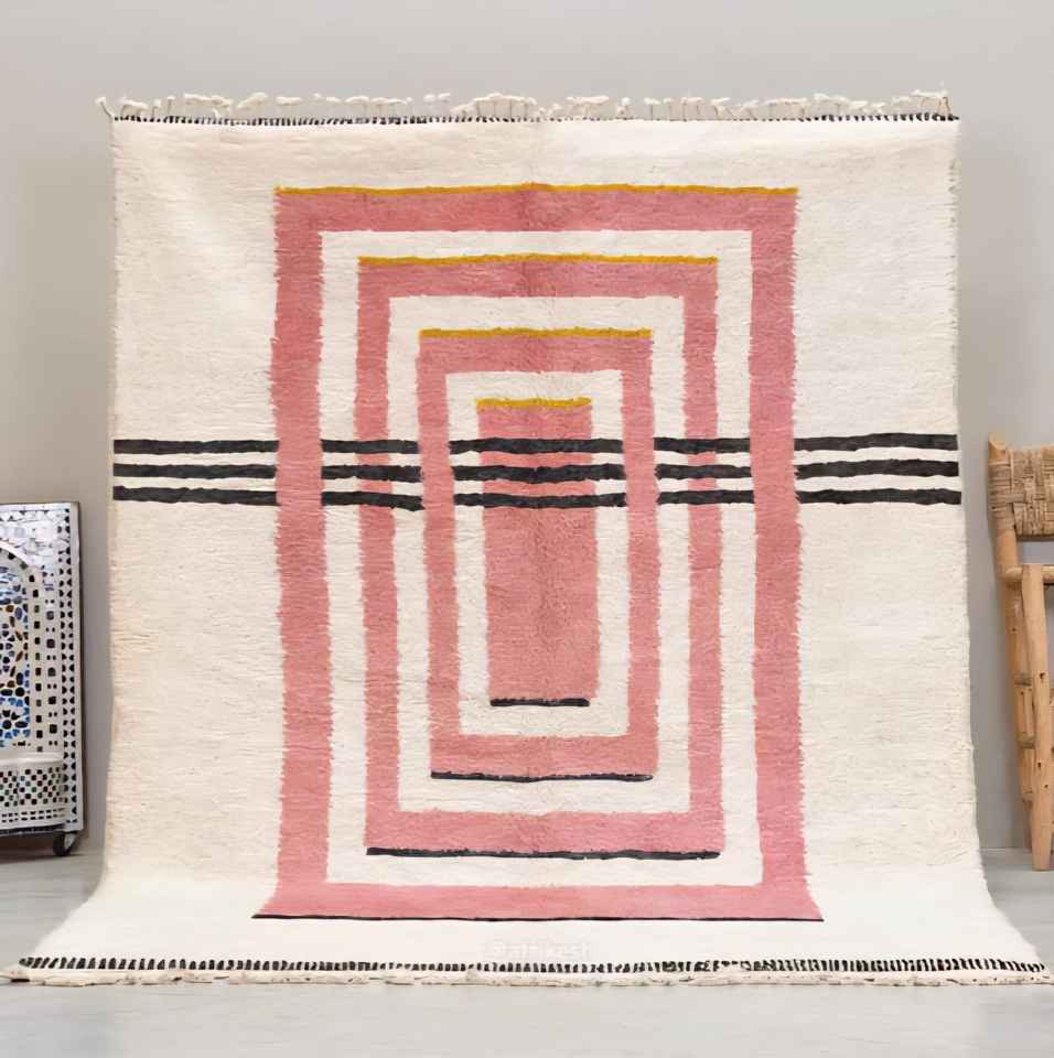 Tapis marocain vintage moderne fait main avec un design antique, tapis en laine lavable de haute qualité pour la maison et la prière