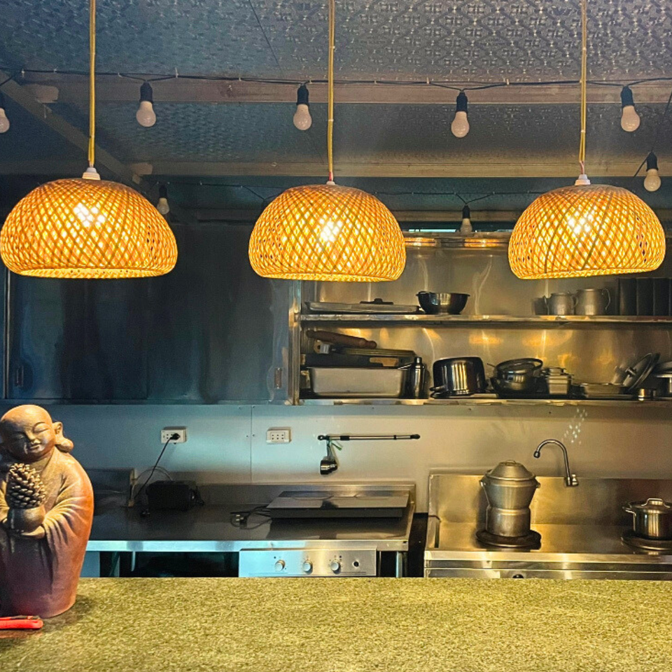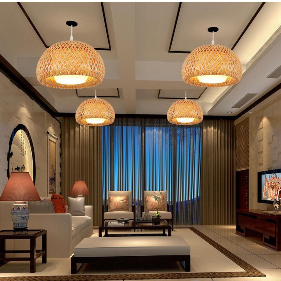 Lustre moderne en osier rotin bambou fait à la main lampe suspendue rétro Simple Design créatif maison tissé lustre pendentif panier de rangement