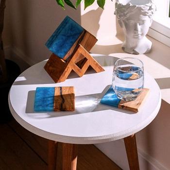 Ensemble de sous-verres en bois modernes faits à la main en résine époxy Table basse oeuvre décorative boisson tapis et tampons pour décoration de table