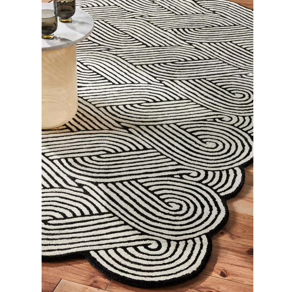 Tapis moderne en laine fait main motif géométrique abstrait noir et blanc tapis personnalisé pour la maison ou le pique-nique lavable