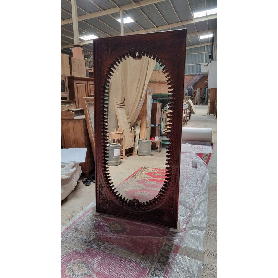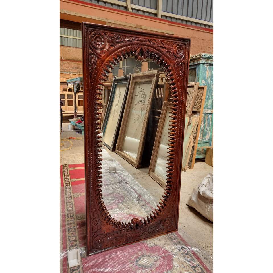 Cadre de miroir sculpté en bois de manguier fait à la main de conception moderne et vintage