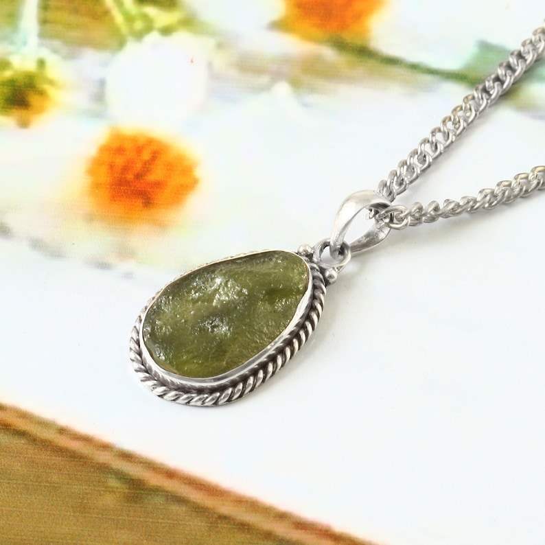 Handmade Moldavite Rough Pendant 925 Sterling Silver Jewelry for Natural Elegance and Special Celebrations