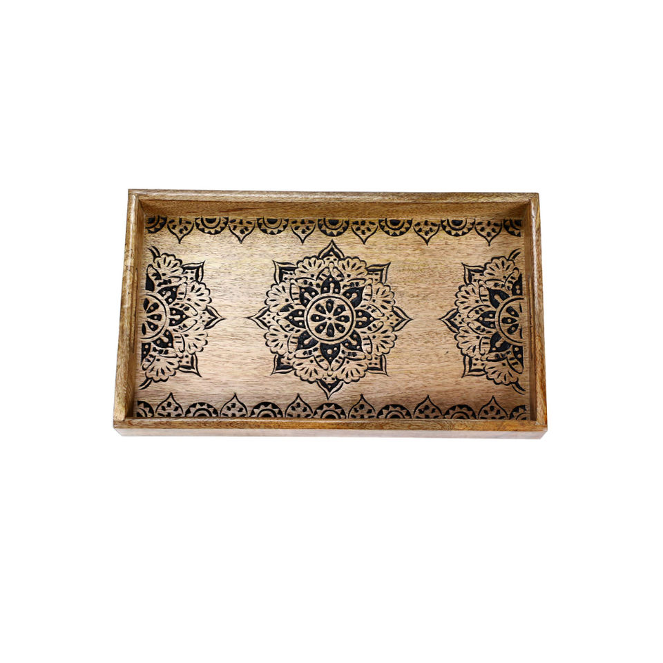 Plateau de service octogonal en bois de style marocain fait main avec incrustation de nacre, plateau décoratif orné d'ornements arabes pour la présentation du café