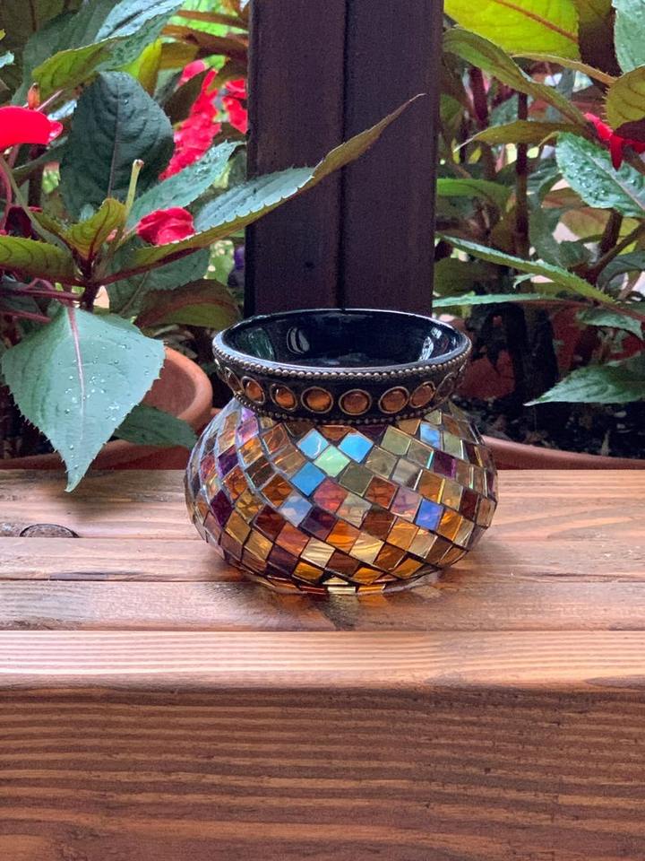 Handmade Mosaic Glass Votive and Candle Holders with Gold Rims for Home Decor During Diwali Occasions