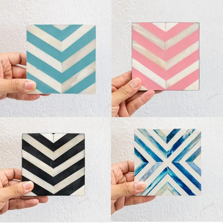 Ensemble de dessous de verre à thé octogone en incrustation de nacre faite à la main meilleur cadeau de décoration pour la maison-sous-verres gratuits RDM 6 pièces tapis et tampons