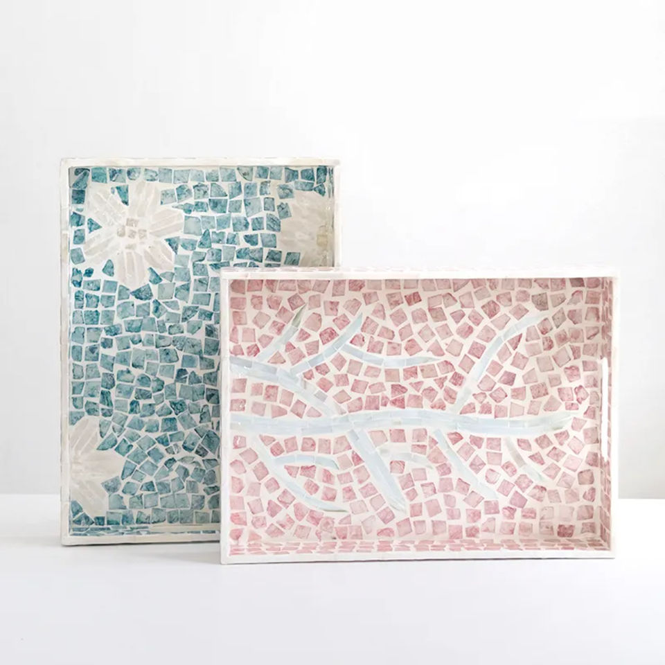 Plateau de service rond en rotin tressé avec incrustation de nacre faite à la main, plateau décoratif pour table basse, cadeau unique pour la décoration de la maison