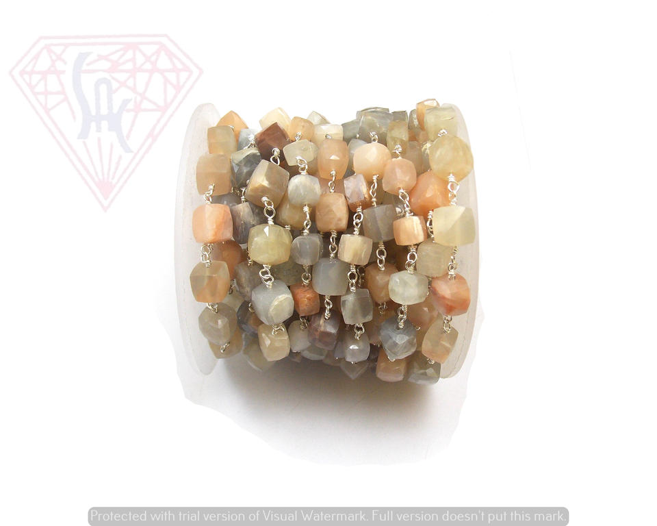Multi Stone Beaded Box Rosary Chain With Silver PlatedJewelry Name