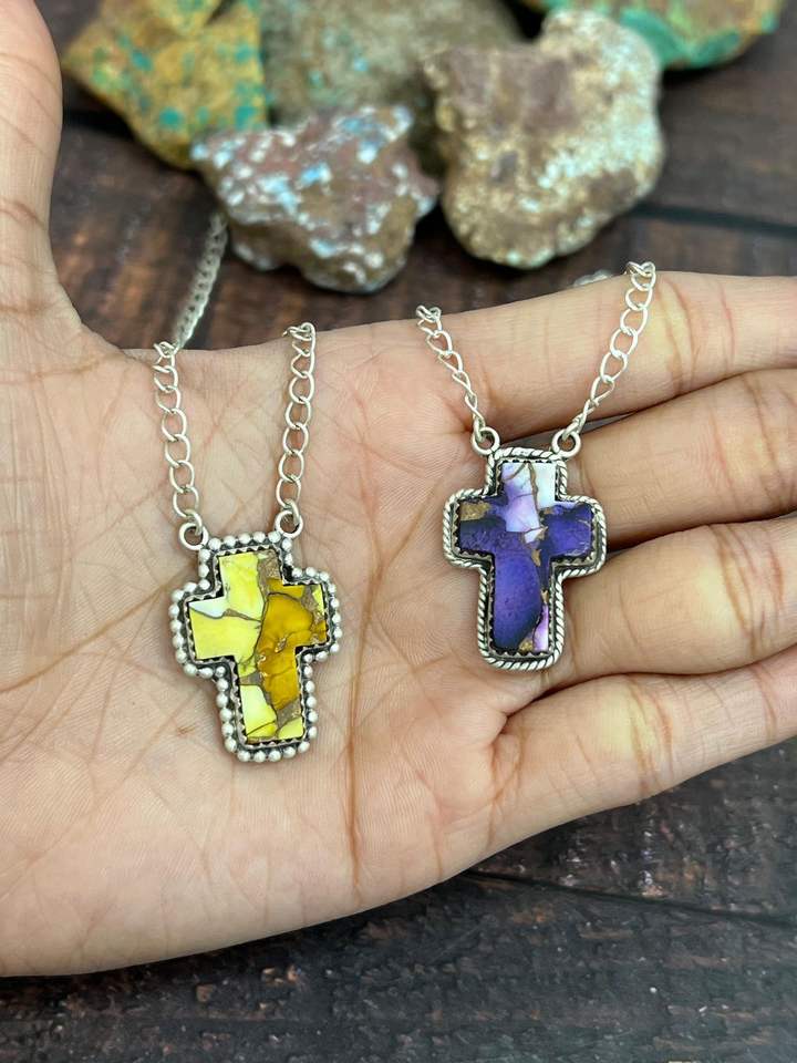 Collier croix multi-pierres fait main bijoux artisanaux religieux uniques en argent sterling coloré or cadeau spirituel unisexe