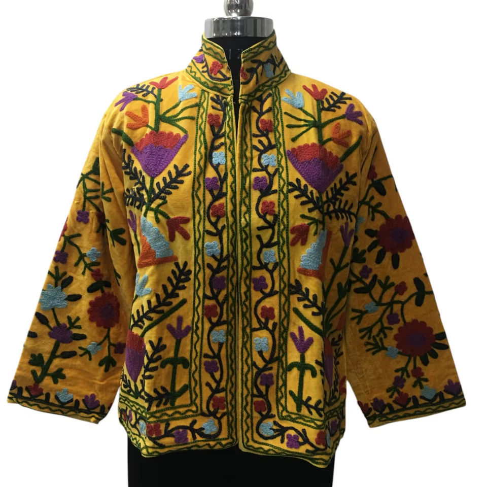 Veste en velours brodé Suzani multicolore faite à la main pour femmes veste respirante design floral artisanale pour femmes