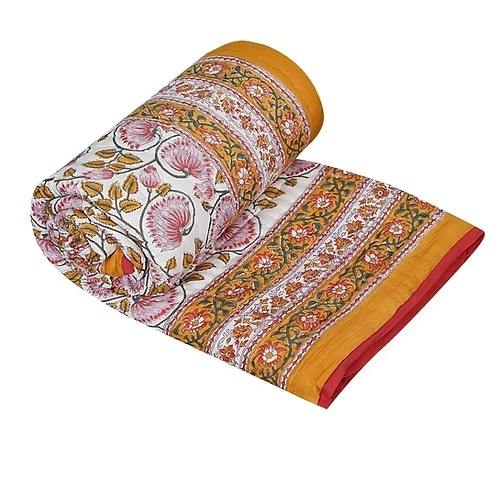 Courtepointes de moutarde faites à la main Inde bloc impression courtepointes pour l'exportation Lotus moutarde main bloc imprimé couette pour la maison