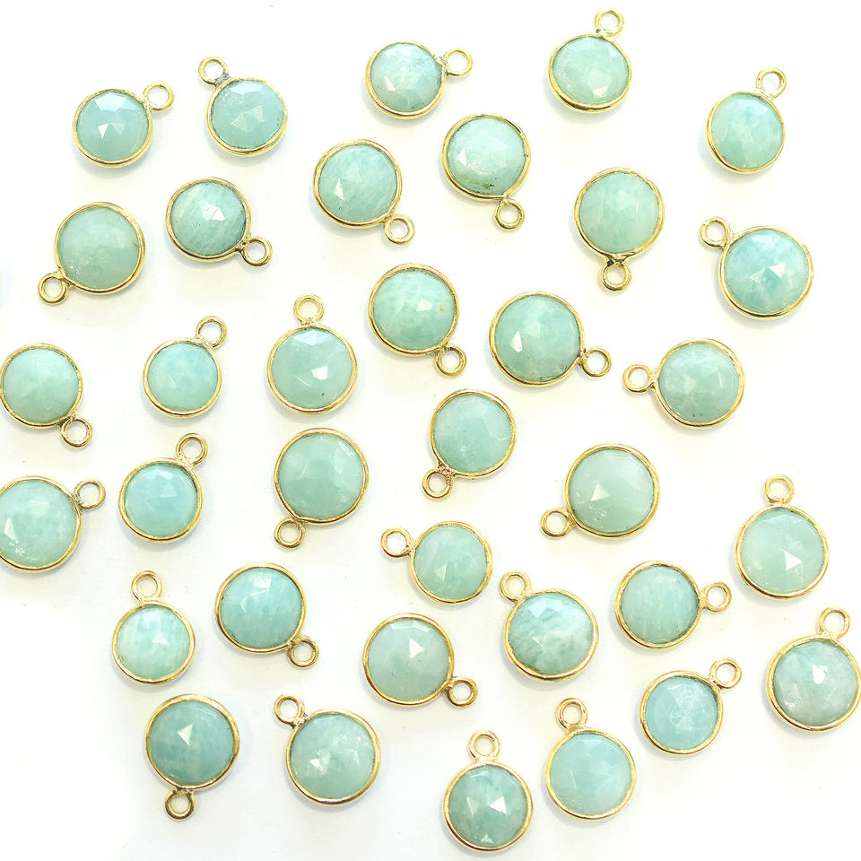 Nom de la pierre:Pendentif Amazonite de Forme Ronde avec Lunette Argentée et Plaqué Or