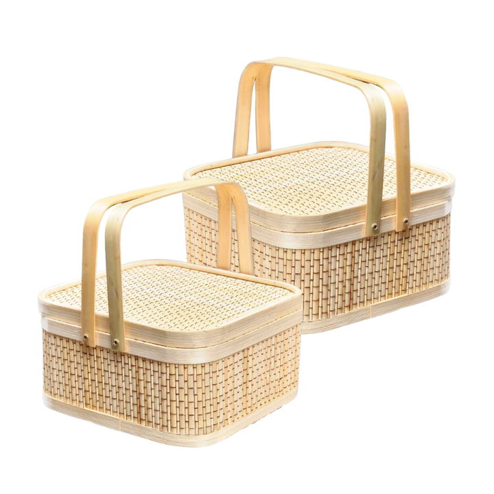 Panier cadeau en bambou naturel fait à la main durable, réutilisable et parfait pour les paniers de fruits, les pique-niques ou la décoration intérieure.