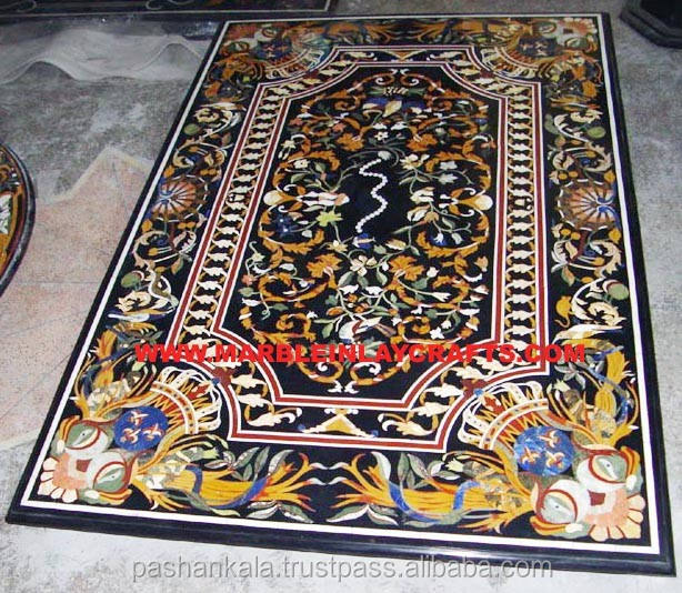 Nom du produit:Plateau de table rectangulaire en marbre noir naturel fait main avec incrustations artistiques