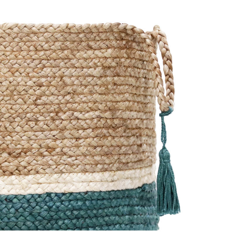 Handmade Natural Bohemian Jute Storage Basket Relaxed Woven Organizer
