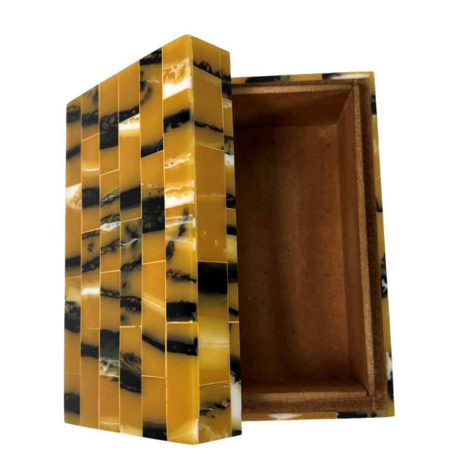 Boîte à bijoux décorative en incrustation d'os naturel faite à la main Organisateur de velours à double ombre pour bagues boucles d'oreilles collier