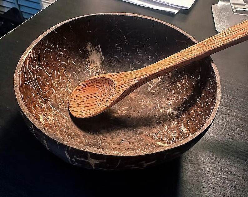 Handmade Natural Coconut Shell Eco-Friendly Durable Reusable Sustainable Serving Bowl for Salad Smoothie Fruit-Dishwasher Safe