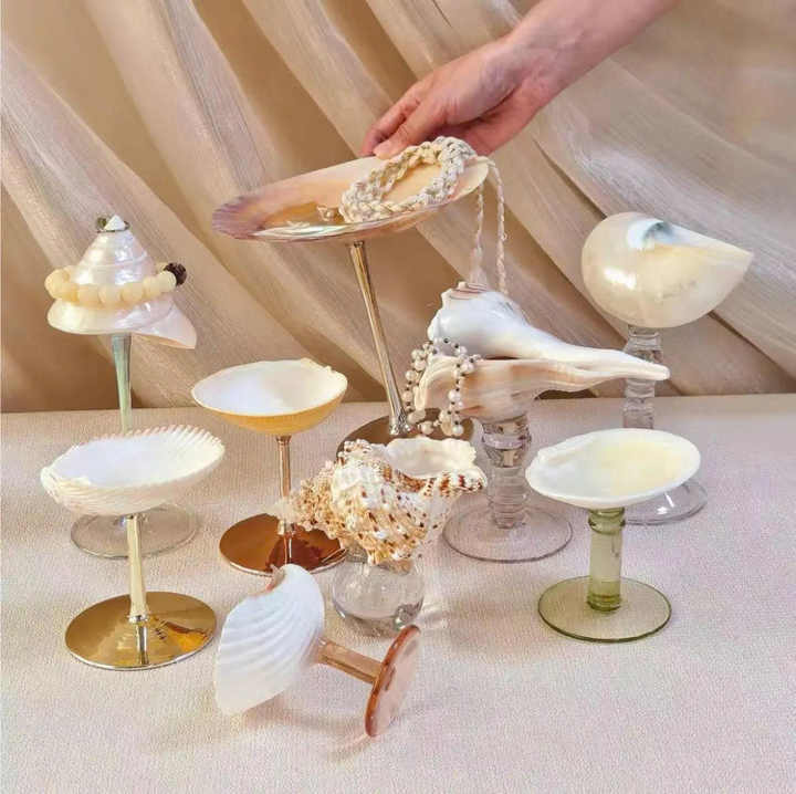 Verre à vin artisanal en coquille de conque naturelle, coupe à martini pour décoration de mariage en bord de mer, tasse unique pour cérémonie rituelle côtière