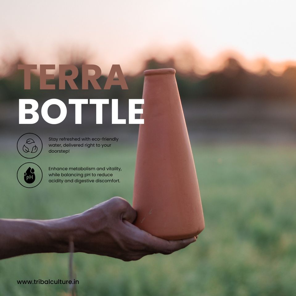 Bouteille d'eau conique en terre cuite naturelle, écologique, rafraîchissante, moderne, faite à la main, avec couvercle, 1000 ml, personnalisable
