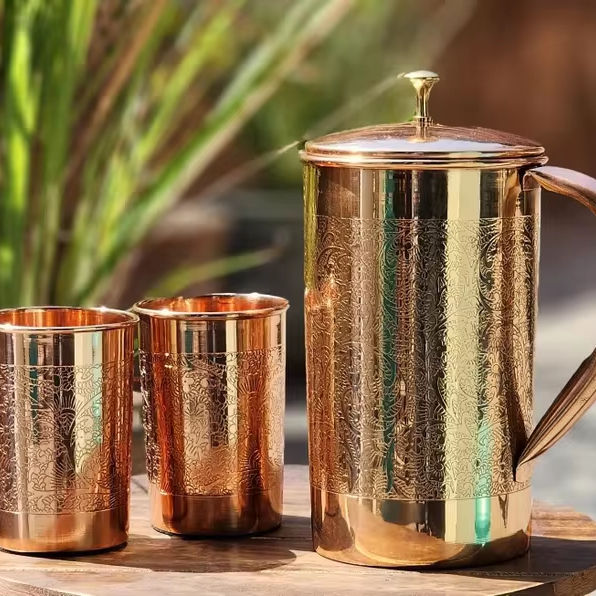 Pichet à eau en cuivre naturel fait à la main Pichet martelé traditionnel pour les avantages ayurvédiques-Cuisine rustique et décoration de table