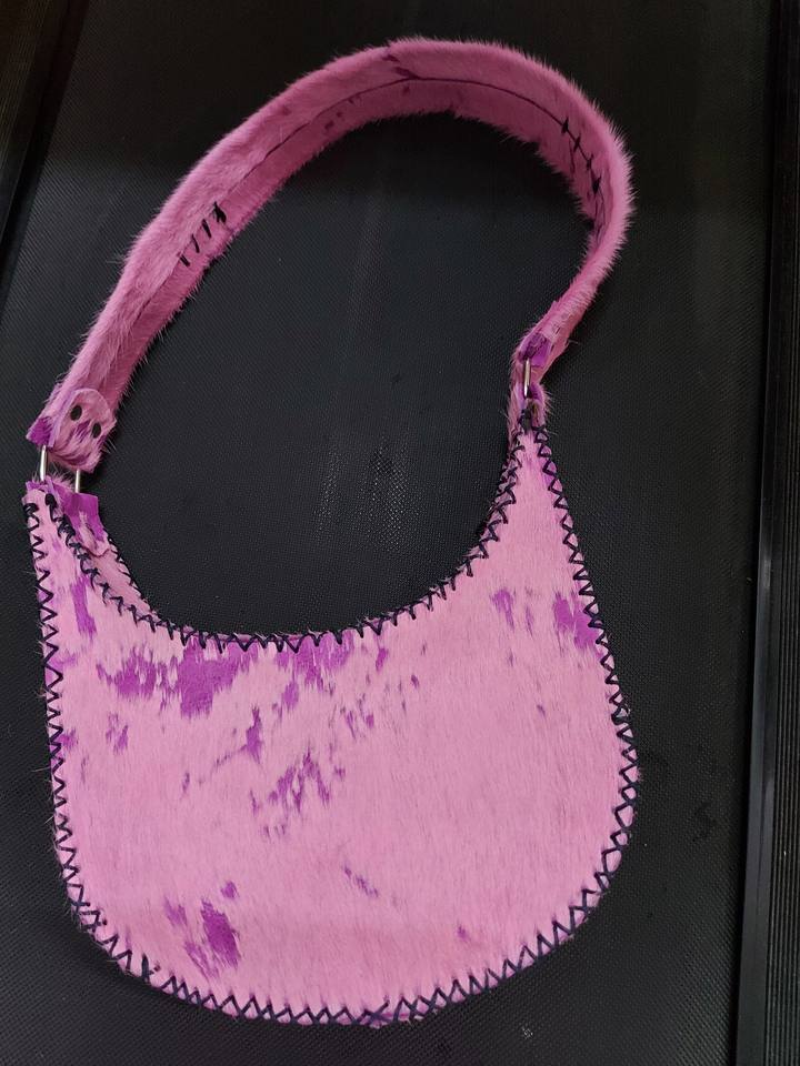 Handmade Natural Cowhide Leather Handbag with Zipper Closure Cowhair on Leather