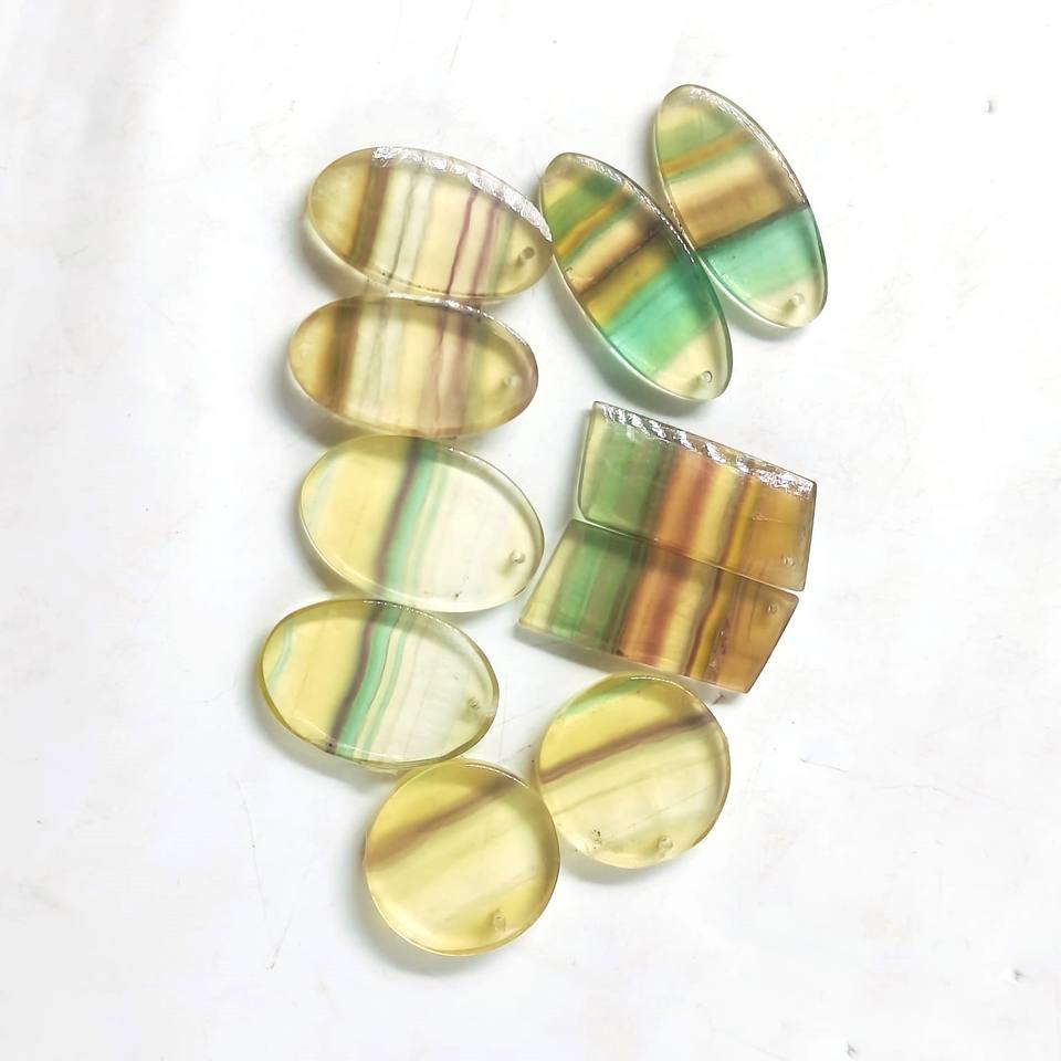 2025 top qualité à la main naturel Fluorite paire Cabochon pierres précieuses en vrac mélanger forme taille en gros Match paire pierre avec perceuse