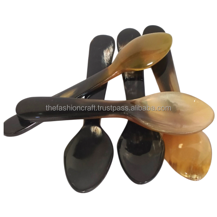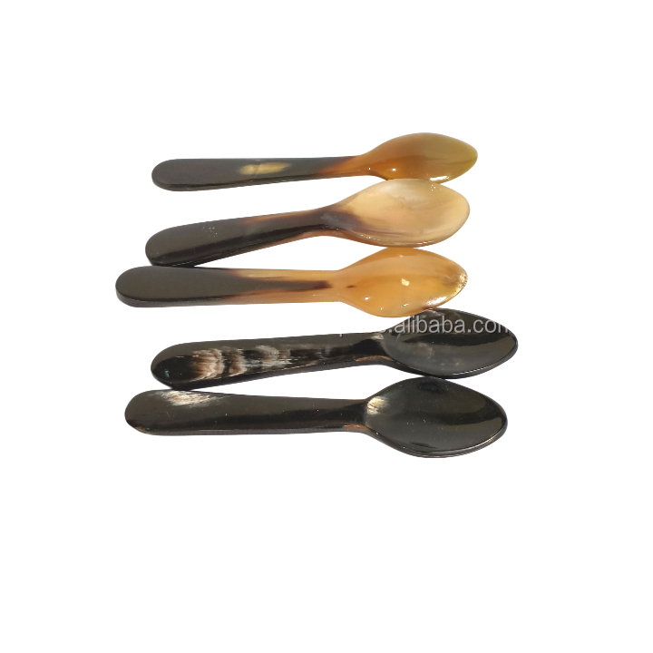 Cuillère artisanale en corne naturelle à long manche, style rustique viking, pour sel et épices, écologique, vaisselle artisanale, compatible lave-vaisselle
