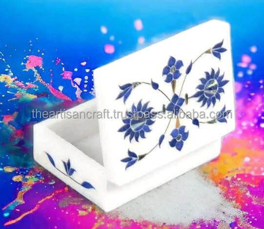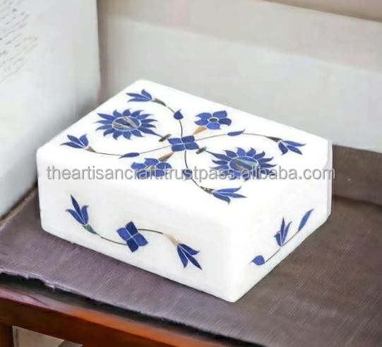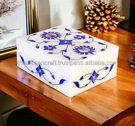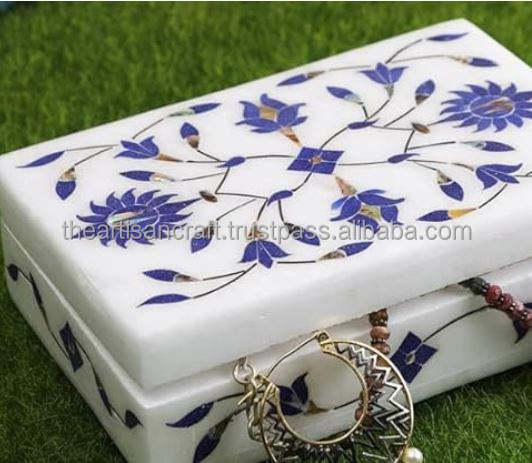 Boîte à bijoux artisanale en marbre naturel, fabriquée à la main, peinte à la main, traditionnelle, durable, décorative, pour femmes, mariage