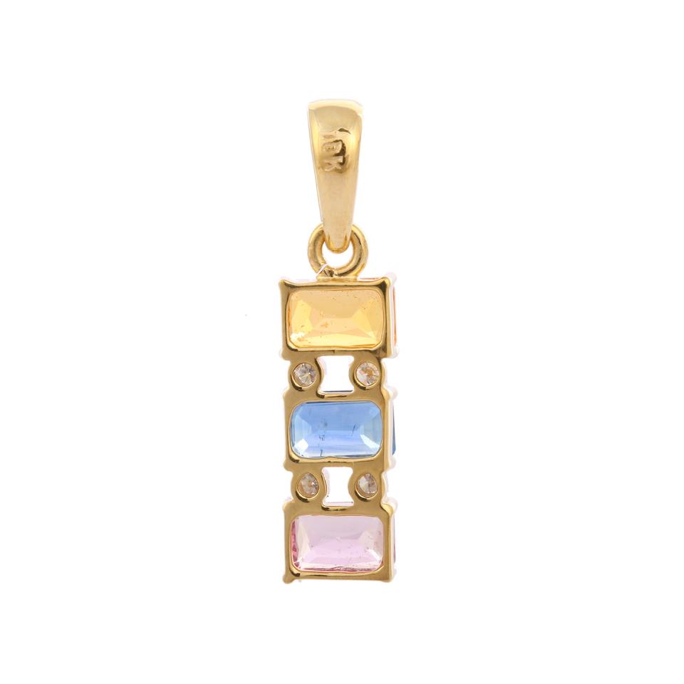 Handmade 18K Solid Yellow Gold Charm Pendant Natural Multi Sapphire Diamond Gemstone Fine Jewelry for Women Girls for Parties