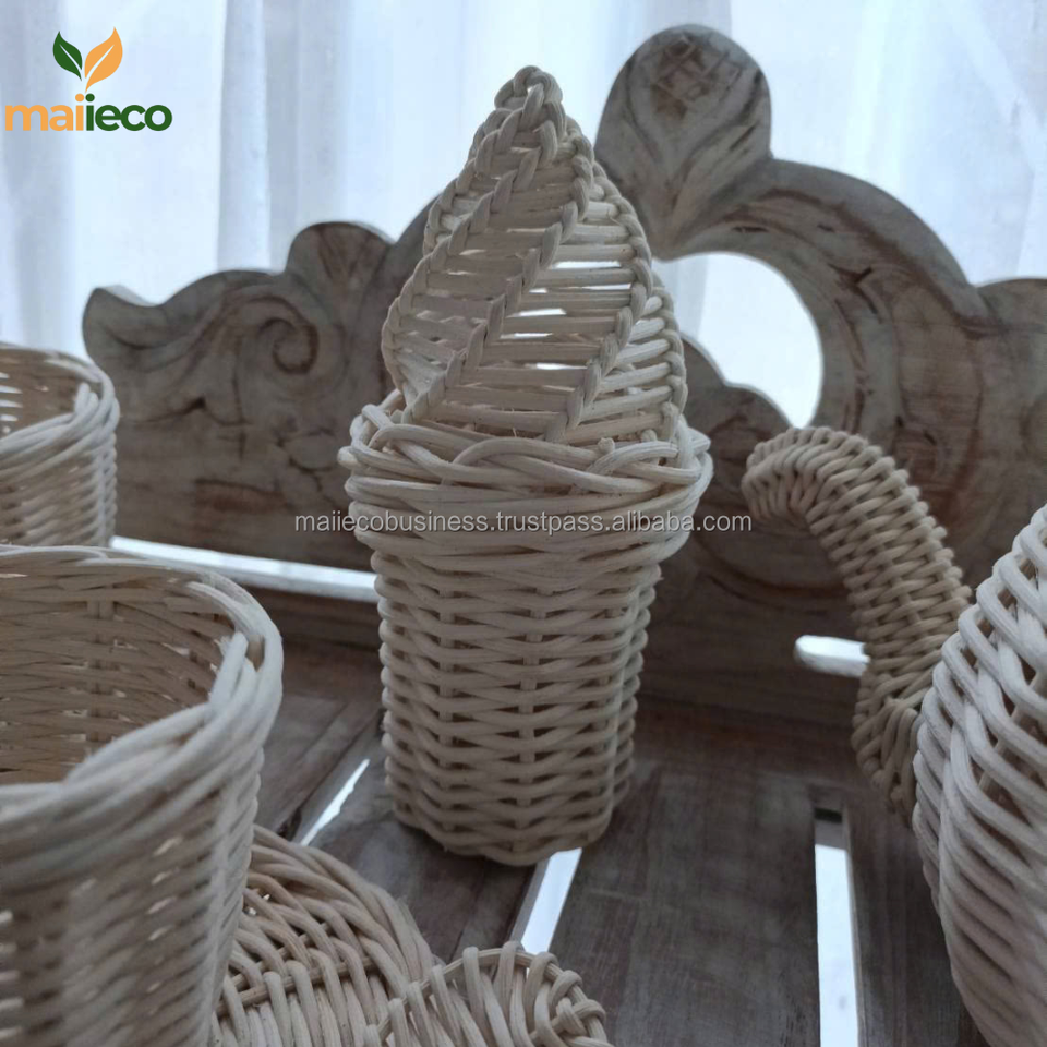 Ensemble de tasses et de pots en rotin naturel faits à la main inspirés du Vietnam pour les fêtes de thé et les hochets musicaux de crème glacée pour bébé